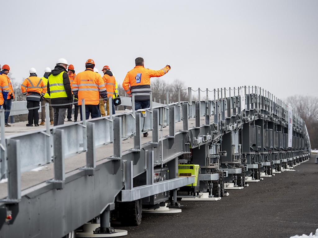 (Keystone-SDA) Der gesamte Verkehr auf der Autobahn A1 in Richtung Bern rollt seit Montagmorgen bei Luterbach SO über eine 264 Meter lange und mobile Baustellenbrücke. Unter dieser neuartigen «Astra-Bridge» startet nach Ostern die Sanierung der Fahrbahn.