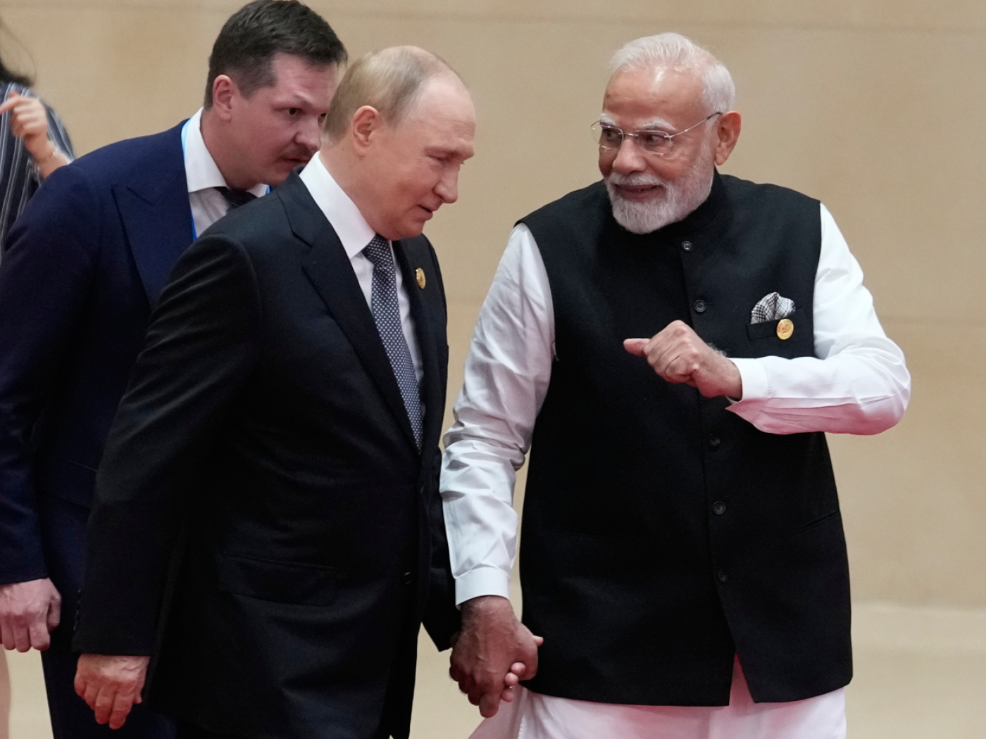 Bei der Begegnung in Tianjin ging es nach Modis Angaben auf dem Portal X auch um den Handel mit Dünger und um die Kooperation in der Raumfahrt. Russische Medien legten ihr Hauptaugenmerk darauf, dass Modi in Putins Präsidentenlimousine vom Typ Aurus zu dem bilateralen Treffen fuhr. Die beiden Politiker hätten in dem Auto etwa 50 Minuten lang miteinander gesprochen. Dann erst begann die offizielle Begegnung der zwei Delegationen.