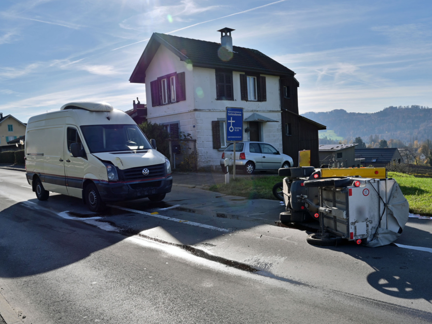 (Keystone-SDA) Gemäss Polizeiangaben bog ein Lenker mit einem Kleinmotorrad und angekoppeltem Anhänger von der Schürmattstrasse auf die Hauptstrasse ein. Anschliessend wollte er nach links auf einen Vorplatz abbiegen.