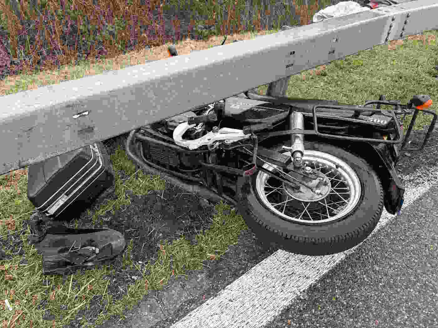 (Keystone-SDA) Der Mann fuhr kurz nach 13 Uhr auf der Autobahn A13 von St. Margrethen in Richtung Au, wie die Kantonspolizei St. Gallen am Sonntag mitteilte. In der Rechtskurve der Ausfahrt kippte sein Motorrad um und schleuderte gegen die Leitplanken.