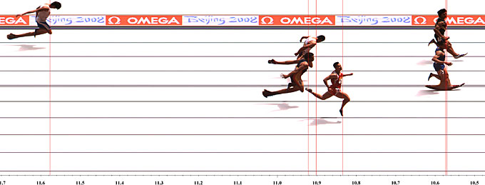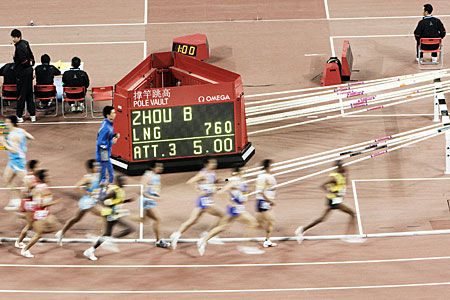 Oft entscheiden im Sport Tausendstelsekunden über Sieg und Niederlage. Verantwortlich für die präzise Zeitmessung ist an den Olympischen Spielen 2008 in Peking der Schweizer Uhrenhersteller Omega. (Omega)