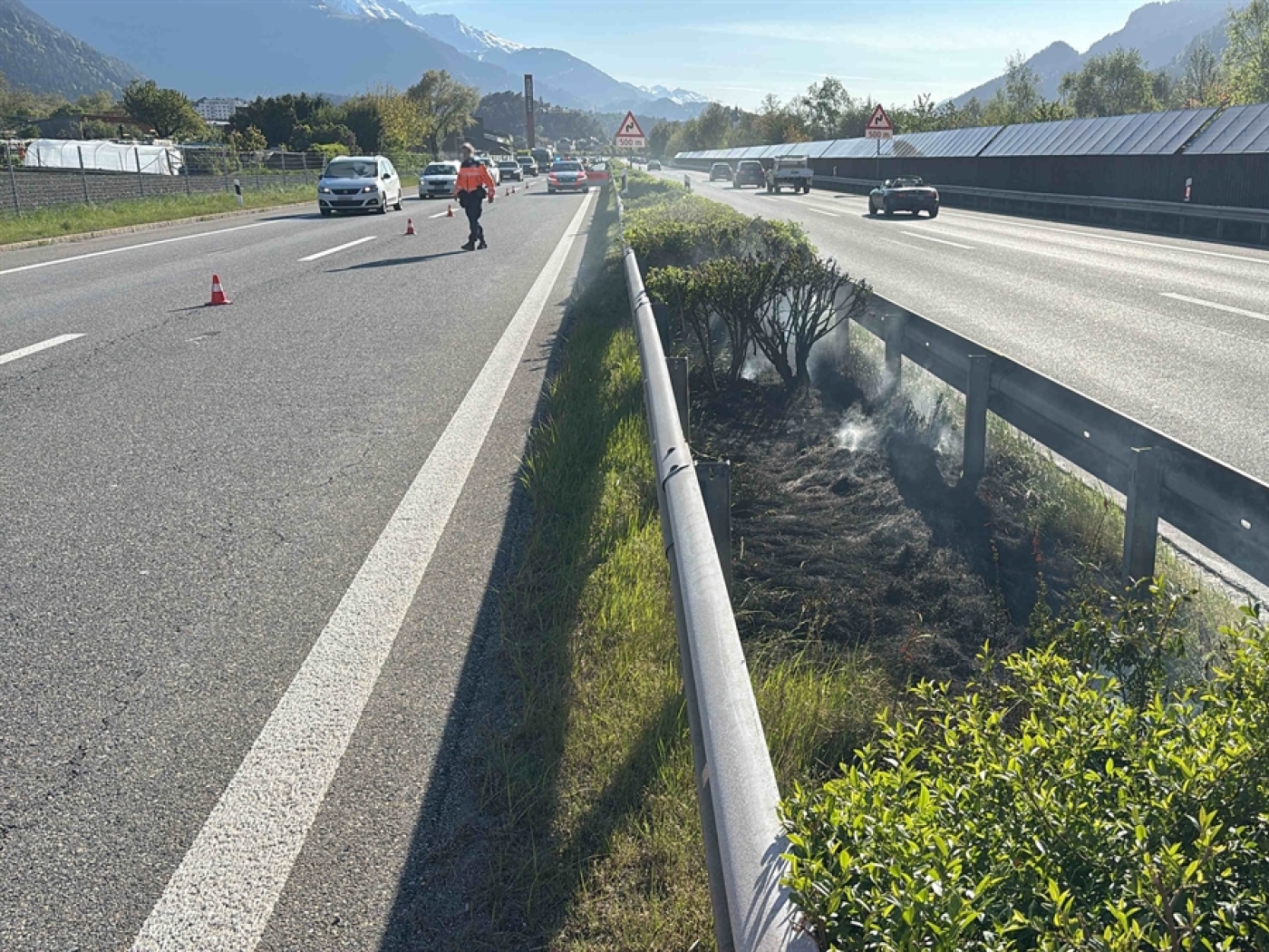 Mutmassliches Zigarettenfeuer behindert Autobahn bei Domat/Ems GR