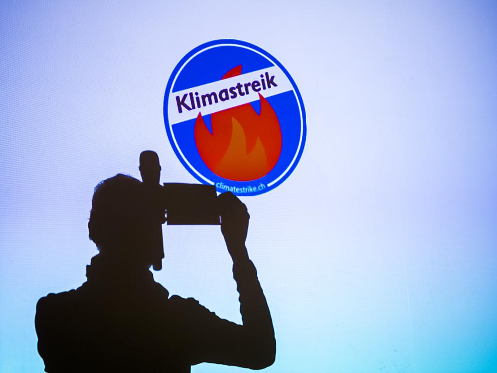 Ein Mitglied des Klimastreiks Waadt bei einer Versammlung Ende 2019. (Archivbild) KEYSTONE/JEAN-CHRISTOPHE BOTT sda-ats