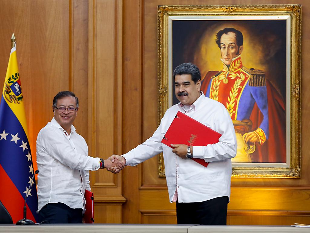 (Keystone-SDA) Kolumbiens Präsident Gustavo Petro und sein venezolanischer Amtskollege Nicolás Maduro haben sich im Rahmen der Wiederannäherung der beiden südamerikanischen Nachbarländer erstmals persönlich getroffen. Die beiden Staatschefs wollen die Zusammenarbeit in verschiedenen Bereichen – darunter Wirtschaft, Handel und Sicherheit – verstärken, wie aus einer gemeinsamen Erklärung nach dem Treffen in Venezuelas Hauptstadt Caracas am Dienstag (Ortszeit) hervorging.