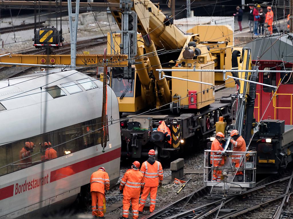 Drei Wagen des ICE 75 waren am Mittwoch um 16.59 Uhr bei der Einfahrt in den Bahnhof Basel SBB aus den Schienen gesprungen. Die 500 Passagiere, die sich an Bord des aus Hamburg kommenden Zugs befanden, konnten diesen geordnet verlassen. Nach dem Unfall stand der ganze Bahnhof Basel SBB wegen eines Stromunterbruchs für zwei Stunden komplett still.