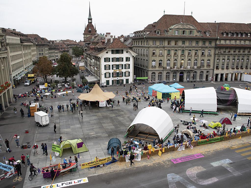 Dessen ungeachtet versuchte es die rotgrüne Stadtberner Regierung am Montag zunächst mit Dialog. Die Aktivisten sicherten den Behörden zwar zu, am Dienstagmorgen vorübergehend dem traditionellen Wochenmarkt Platz zu machen. Danach wollen sie aber den Platz wieder in Beschlag nehmen.
