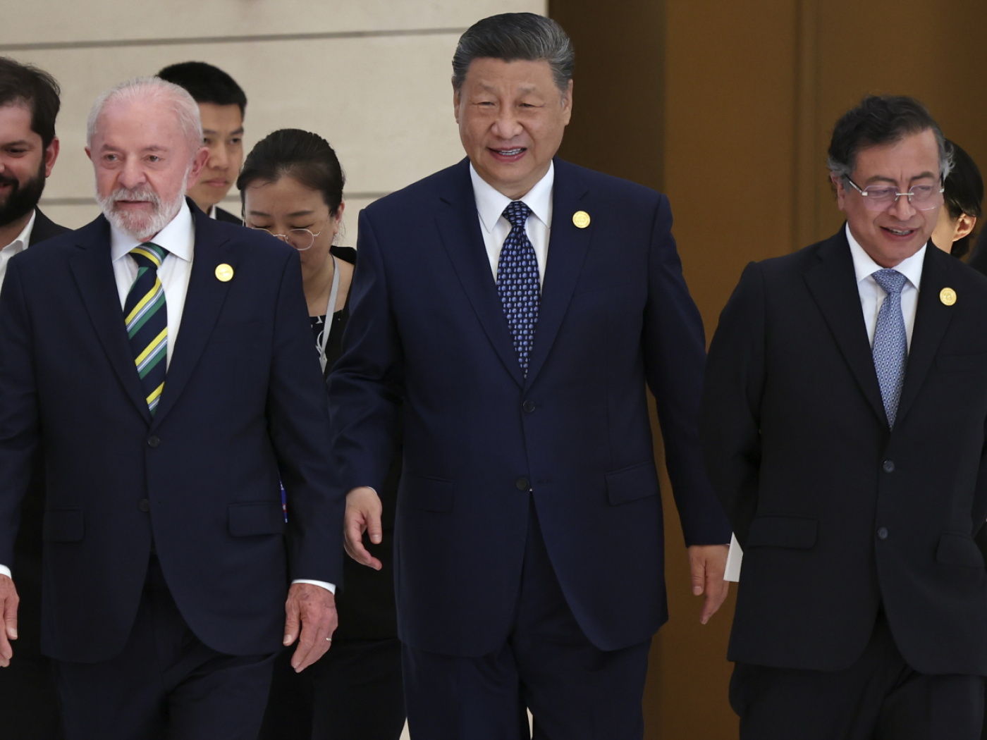 Die Volksrepublik ist an den Rohstoffen in Lateinamerika interessiert. Aus Brasilien erhöhte China jüngst den Kauf von Sojabohnen, um auch bei Agrarprodukten weniger von Importen aus den USA abhängig zu werden. Zudem verfügen die Länder in Lateinamerika über wichtige Rohstoffe, wie Lithium aus Chile, das besonders wichtig in der Batterie-Herstellung ist. Länder des Globalen Südens seien die Protagonisten für Entwicklung, sagte Chiles Präsident Gabriel Boric.