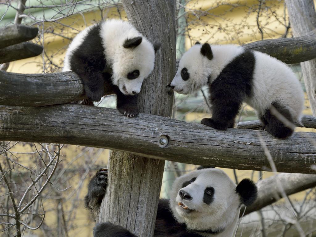 (Keystone-SDA) Unter dem fürsorglichen Blick ihrer Panda-Mama haben die Zwillingskinder Fu Feng und Fu Ban in Wien erstmals ihre Aussenanlage inspiziert. Die sieben Monate alten Bären spielten am Montag im Freien und kletterten mutig auf Baumstämme.