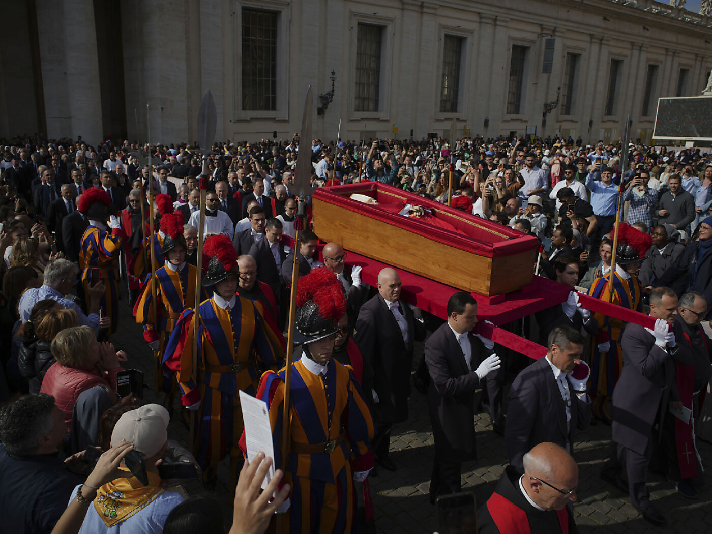 Die Beisetzung des Papstes wird am Samstag an mehreren Orten in der Schweiz in Kirchen live übertragen. In Bern, Freiburg, St. Gallen und Sitten finden unter anderem Gedenkgottesdienste statt - in Freiburg in Anwesenheit einer Delegation der Schweizergarde.