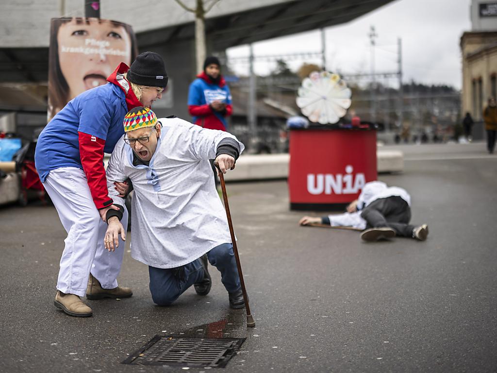 Das Gesundheitssystem sei in der Krise, teilte die Gewerkschaft Unia mit. Mehr als 15’000 Pflegestellen sind demnach unbesetzt, und pro Monat steigen 300 Pflegende aus dem Beruf aus. Die Situation spitze sich trotz der 2021 angenommenen Pflegeinitiative zu. Das Pflegepersonal forderte Bundesrat und Parlament auf, den Volksauftrag ernst zu nehmen und sofort zu handeln.