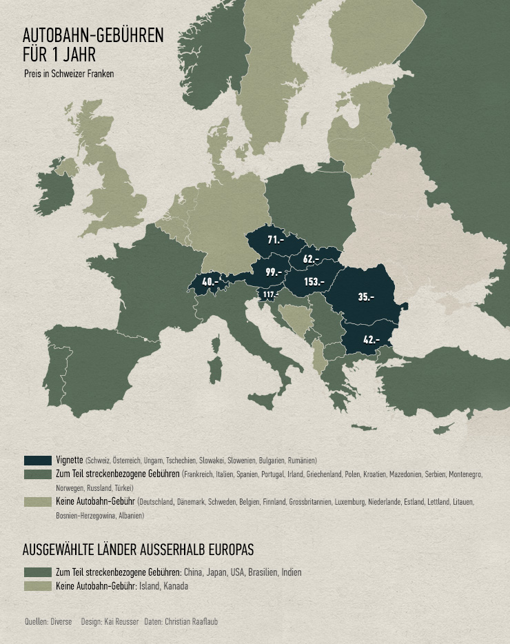 Konkret stehen sich in der Schweiz zwei Lager gegenüber, seit Regierung und Parlament in diesem Frühjahr beschlossen haben, die Vignette auf 100 Franken anzuheben und neu für 40 Franken eine Zweimonats-Vignette einzuführen.