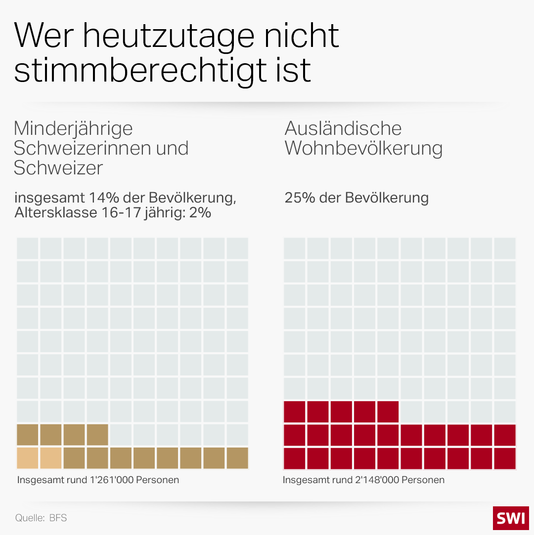 Die direkte Demokratie dient zwar dazu, die Bevölkerung in die politischen Entscheidungen einzubinden. Die regelmässigen Volksentscheide machen aber auch immer wieder deutlich, wer nicht zum Stimmvolk gehört.