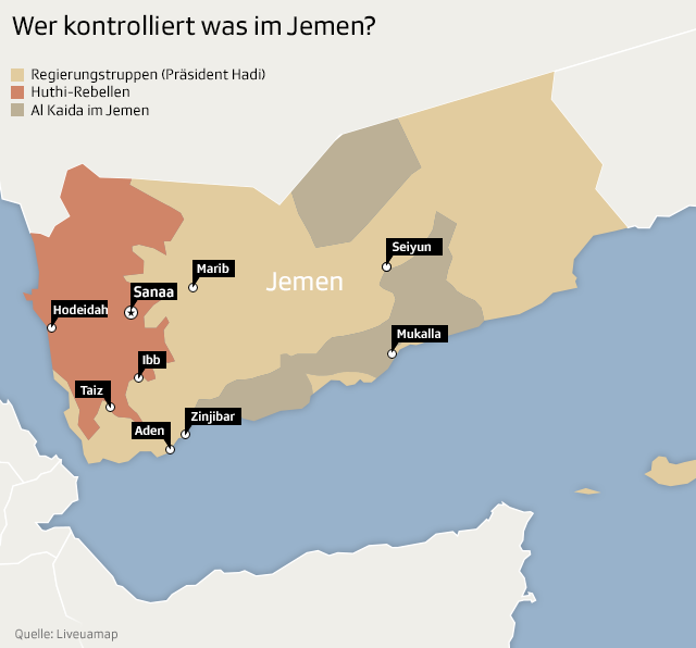 In diesem Krieg, der 2015 entfacht wurde, hat es in der Tat lokale (Regierungstruppen, Huthi-Rebellen, jemenitische Al-Kaida), religiöse (vor allem Saudi-Arabien und Iran) und globale (vor allem USA und Russland) Protagonisten.