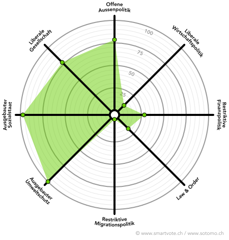 Politische Positionierung von Lisa Mazzone gemäss Daten von smartvote.ch. swissinfo.ch