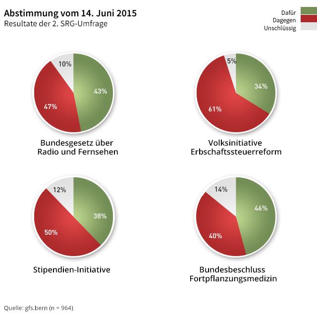 Die 2. Umfrage zu den Volksabstimmungen vom 14. Juni 2015 wurde vom Forschungsinstitut gfs.bern im Auftrag der SRG SSR durchgeführt, zu der auch swissinfo.ch gehört.