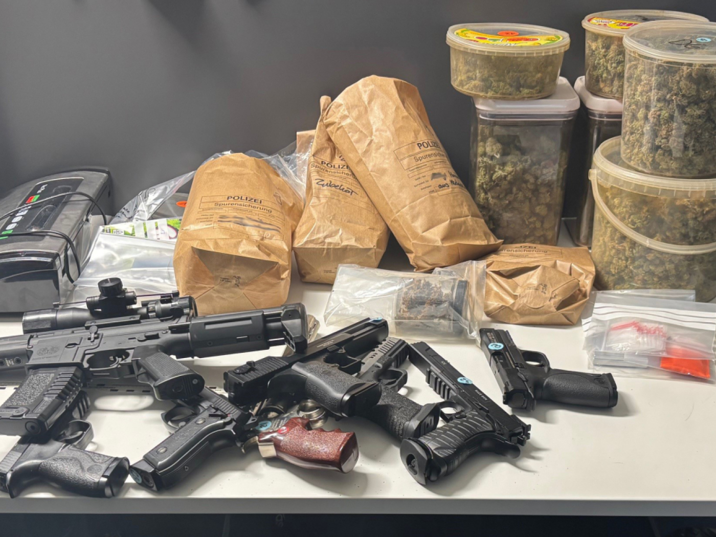 Bei der von der Staatsanwalt angeordneten Hausdurchsuchung beim 52-Jährigen stiessen die Einsatzkräfte schliesslich auf eine professionell betriebene Indoor-Hanfanlage, die sich über zwei Stockwerke erstreckte. Zudem fanden sie rund zwei Kilogramm Marihuana, etwa 150 Gramm Haschisch, mehrere Portionen Kokain, über 1500 Franken Bargeld sowie neun Gasdruckwaffen.
