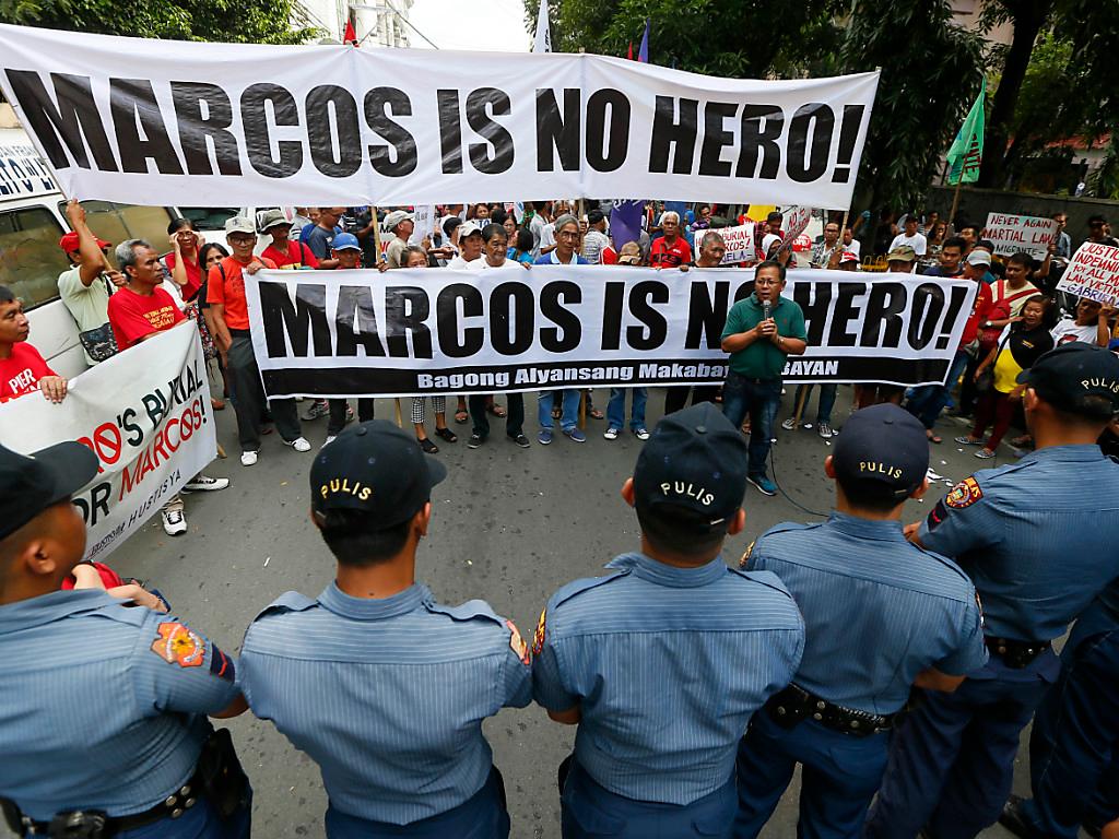Aktivisten, die gegen das Begräbnis gekämpft hatten, reagierten mit einem Sturm der Entrüstung auf die kurzfristige Ankündigung. Sie werfen Marcos massive Menschenrechtsverletzungen während seiner gut 20-jährigen Amtszeit vor und halten ihn nicht für würdig, auf einem Heldenfriedhof begraben zu werden.