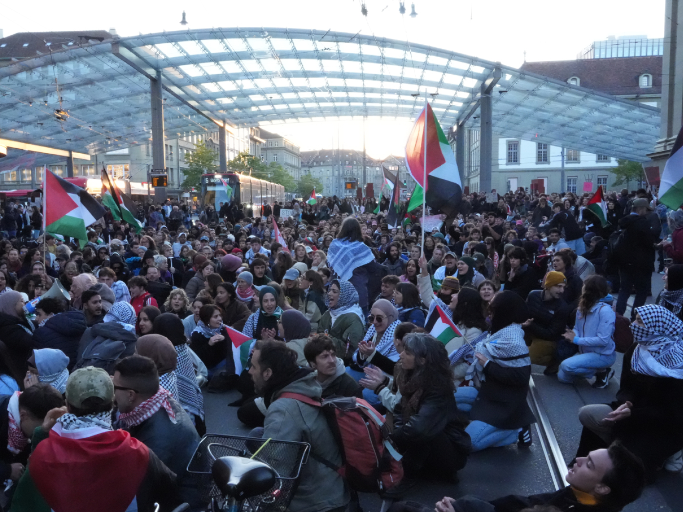 In der Kundgebung zuvor forderten die Teilnehmerinnen und Teilnehmer von Israel, die Aktivistinnen und Aktivisten der Gaza-Hilfsflottille freizulassen. Die Schweiz müsse ihre völkerrechtlichen Verpflichtungen wahrnehmen und sich «aktiv für ein Ende des Genozids in Gaza» einsetzen, hiess es weiter.