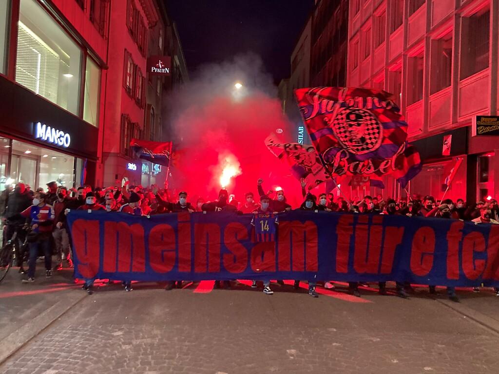 (Keystone-SDA) Einige Hundert Fans des FC Basel haben am Montagabend in der Basler Innenstadt zu einem spontanen Protestmarsch gegen die Geschäftsführung versammelt. Anlass war die Nachricht der Beurlaubung von Valentin Stocker als Captain der Mannschaft gewesen.