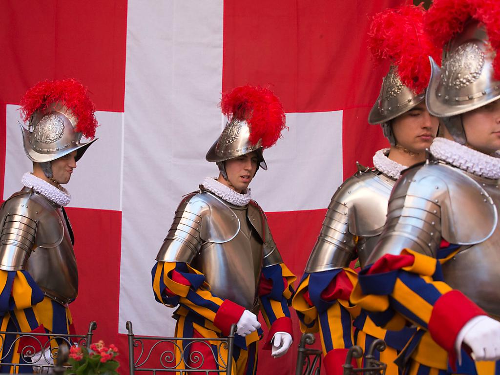 Die Päpstliche Schweizergarde besteht aus 110 Gardisten und wurde 1506 von Papst Julius II. gegründet. Sie ist für den Schutz des Papstes und seiner Residenz verantwortlich, begleitet den Papst auf seinen Auslandsreisen und kontrolliert die Haupteingänge zur Vatikanstadt.