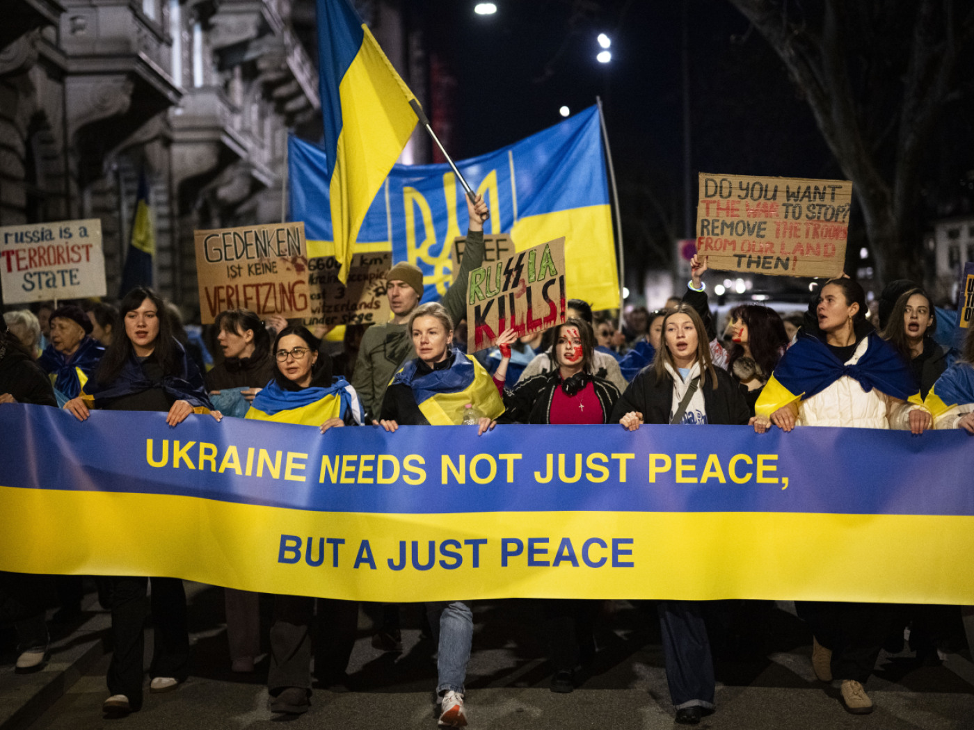 Rund 1000 Menschen versammelten sich am Dienstagabend in der Stadt Zürich, um vier Jahre nach Beginn des russischen Angriffskriegs in der Ukraine ihre Solidarität zu zeigen. Die Demonstration verlief friedlich.