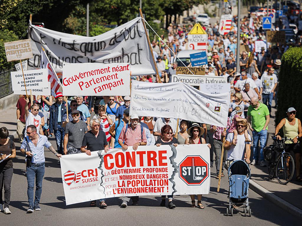 (Keystone-SDA) In Delsberg JU haben rund 1000 Personen gegen ein Geothermieprojekt demonstriert. Sie forderten den sofortigen Stopp des in der Schweiz am weitesten fortgeschrittenen Tiefengeothermieprojekts in der jurassischen Gemeinde Haute-Sorne.