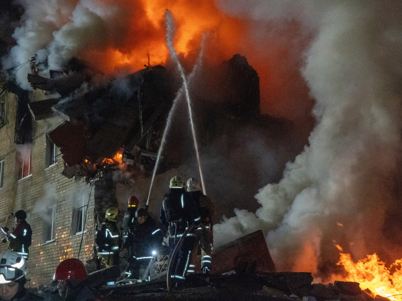 (Keystone-SDA) Auf den veröffentlichten Fotos waren schwere Schäden an dem fünfgeschossigen Wohnhaus zu sehen. Demnach sprengte die Rakete grosse Teile des Gebäudes weg. Präsident Wolodymyr Selenskyj sprach von mehr als zehn Verletzten. «Russland hat 29 Raketen, davon fast die Hälfte ballistische Raketen, und 480 Drohnen, davon die meisten vom Typ Shahed, gegen die Ukraine eingesetzt», teilte er in den sozialen Netzwerken mit. Einmal mehr sei die Energieversorgung Ziel der russischen Angriffe gewesen.