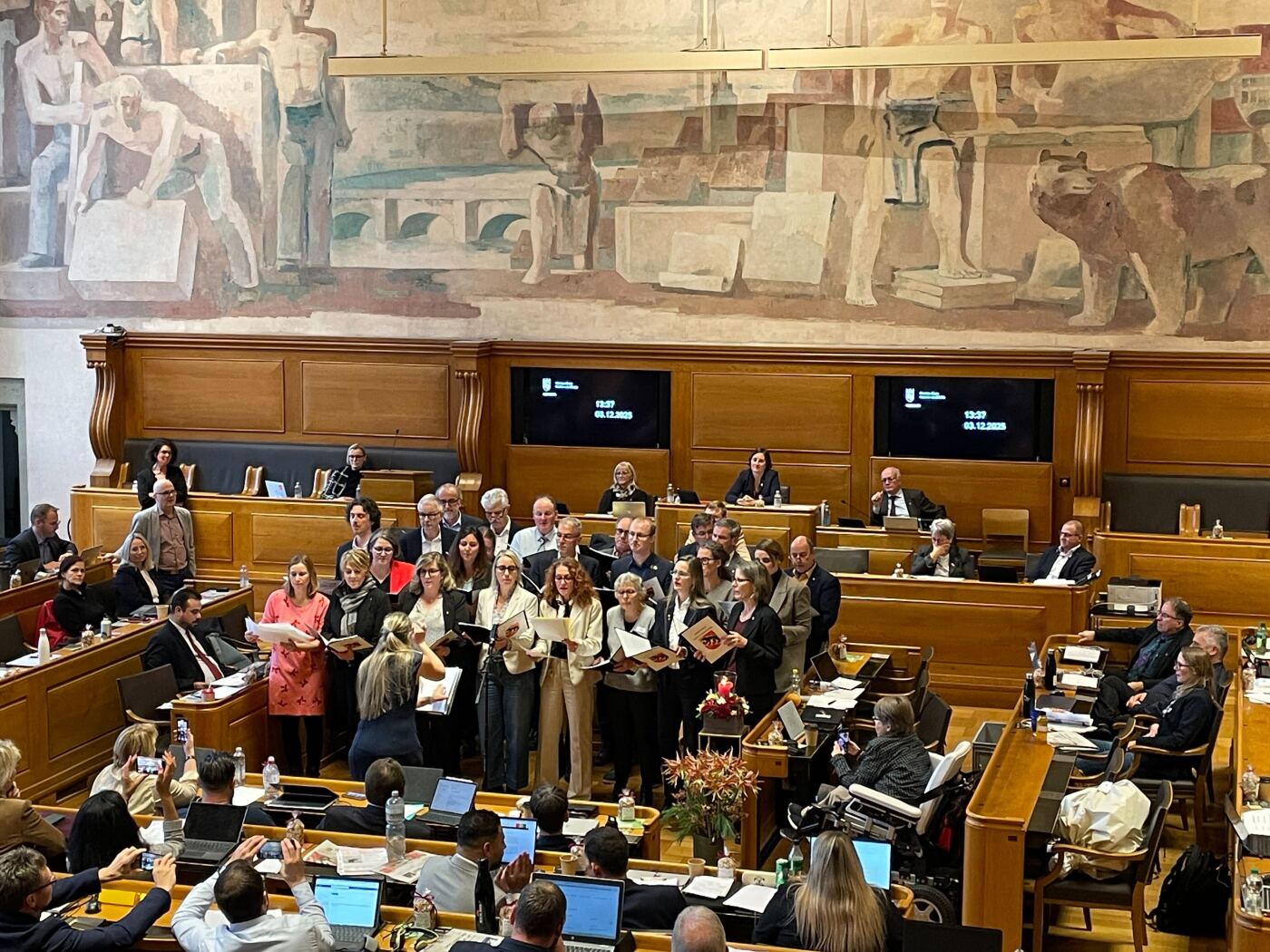 Bereits nach dem Mittag hatte der über 20 Personen umfassende Grossratschor für Weihnachtsstimmung gesorgt. Er trug die Lieder «Le vieux chalet», «Schneeflöckchen Weissröckchen», «Hemmige» und «Peace to the world» vor.