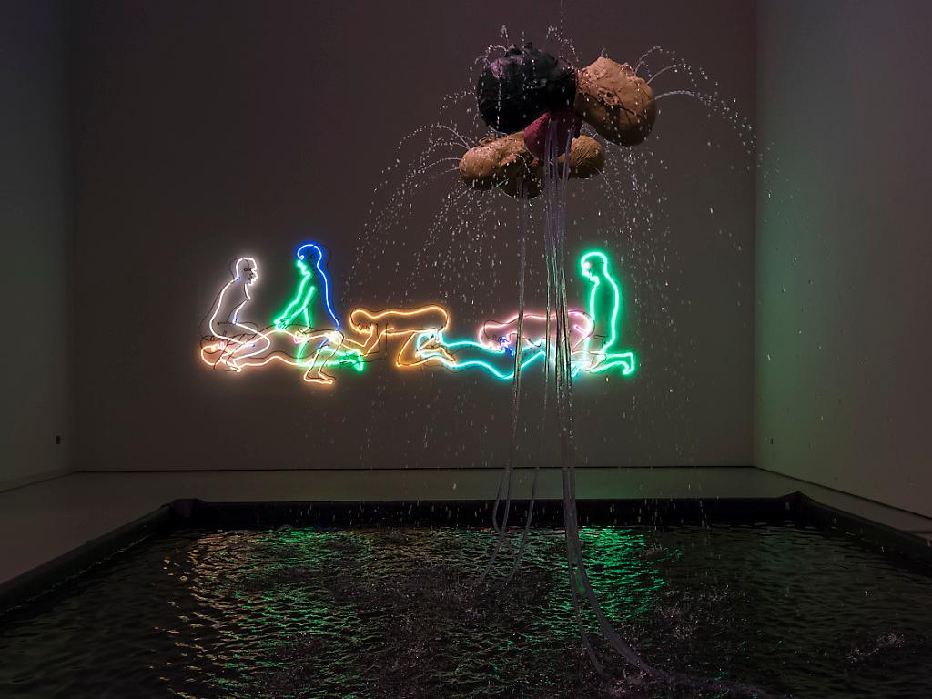 Beleuchtet werden über 50 Schaffensjahre des Künstlers. Zu sehen ist ein äusserst breites Spektrum: Videoarbeiten, Zeichnungen, Druckgrafiken, Fotografien, Skulpturen, Neon- und Soundarbeiten sowie Installationen. Ausser «Leaping Foxes» erstmals zu sehen ist dabei auch die 3D-Videoinstallation «Contrapposto Split» von 2017.
