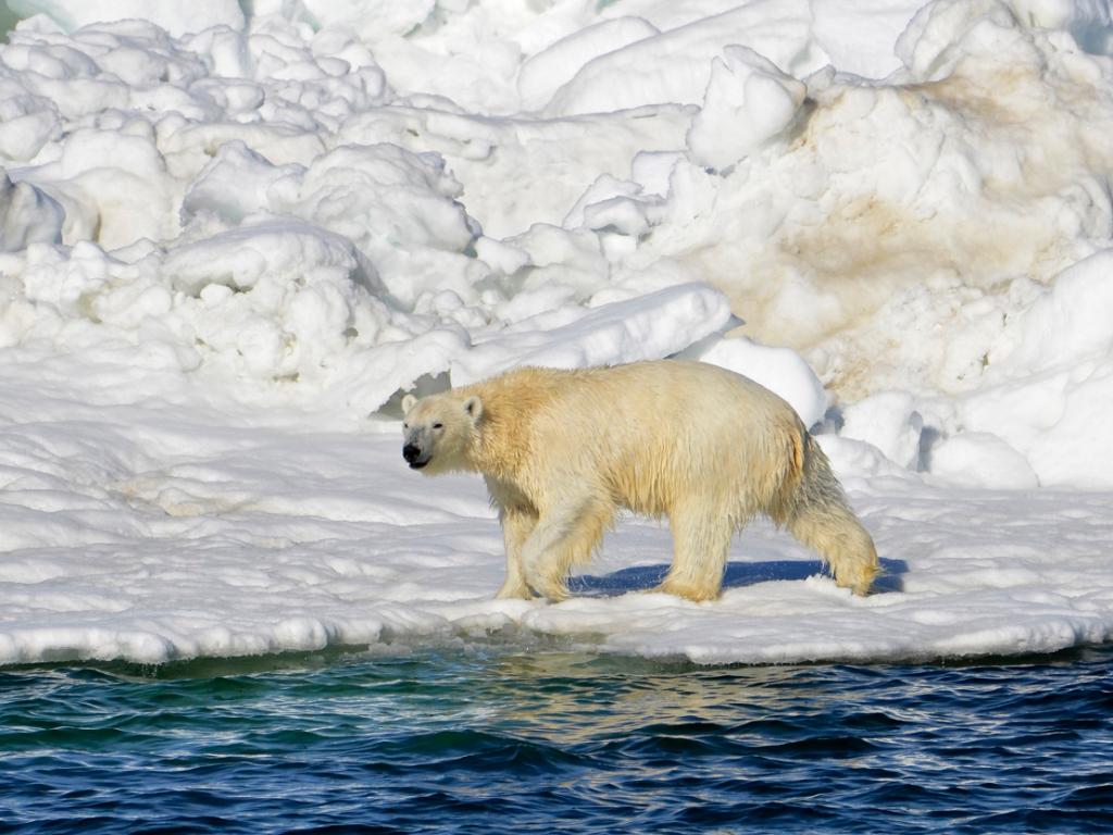 Seit dem Jahr 2008 befindet sich der Eisbär auf der Liste der vom Aussterben bedrohten Tierarten. Das schmelzende Packeis in der Arktis infolge des Klimawandels nimmt den Tieren ihren Lebensraum. Wissenschaftlern zufolge leben in der Arktis noch insgesamt 25’000 bis 31’000 Exemplare. Geht die Eisschmelze weiter wie bisher, rechnen die Experten mit einem Rückgang der Population um 80 Prozent.