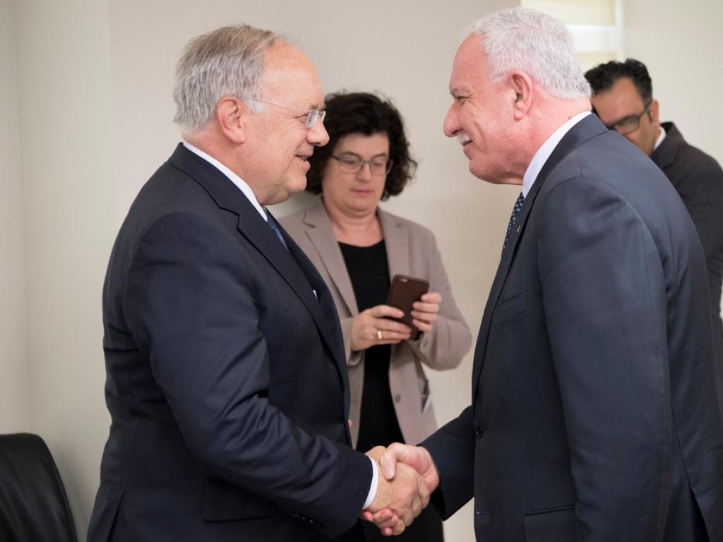 Am ersten Tag seiner Reise traf der Bundesrat auch mit dem palästinensischen Vizepremierminister Ziad Abu Amr, dem Aussenminister Riad Malki und Wirtschaftsministerin Abeer Odeh zusammen. dabei kamen auch die Themen Berufsbildung, die bilateralen Beziehungen, die wirtschaftlichen Schwierigkeiten in den besetzten Gebieten und Ausbildungsfragen zur Sprache.