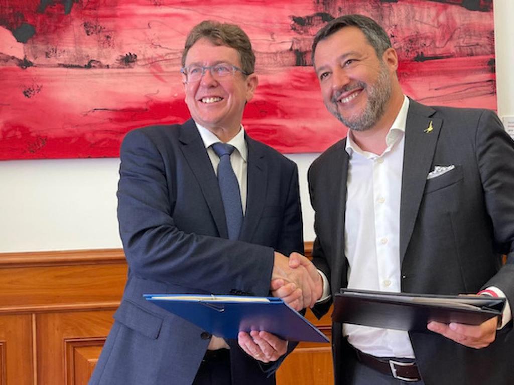 Die Absichtserklärung (Memorandum of Understanding) diene dazu, die Verlagerung des Güter- und Personenverkehrs von der Strasse auf die Schiene weiter zu fördern, teilte das Eidgenössische Departement für Umwelt, Verkehr, Energie und Kommunikation (Uvek) von Bundesrat Rösti mit. Zudem hätten sich Rösti und Salvini auf Vereinfachungen im grenzüberschreitenden Verkehr mit öffentlichen Verkehrsmitteln geeinigt.