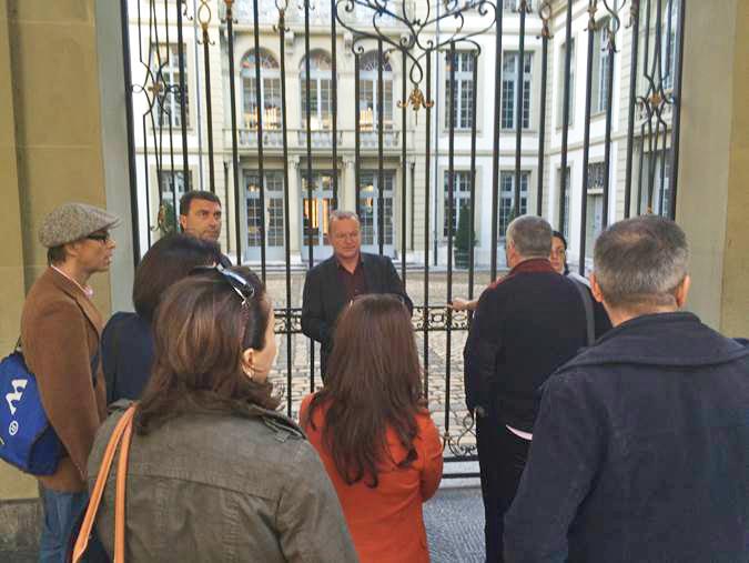 Nach dieser Paukerei ist frische Luft angesagt – Politikwissenschaftler und Historiker Claude Longchamp führt die Gäste durch die Berner Altstadt, die zum Weltkulturerbe der Unesco zählt. Ausgehend von der Geschichte der lange Zeit aristokratisch beherrschten Stadt erklärt Longchamp das parallele Wachsen der Eidgenossenschaft, die Einführung der Demokratie durch den französischen Kaiser Napoleon und die demokratischen Lernprozesse im Bundesstaat nach 1848.