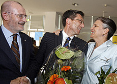 Strahlender FDP-Wahlsieger Thomas Heiniger (Mitte) und FDP-Kantonalpräsidentin Doris Fiala mit FDP-Parteipräsident Fulvio Pelli (links). Keystone
