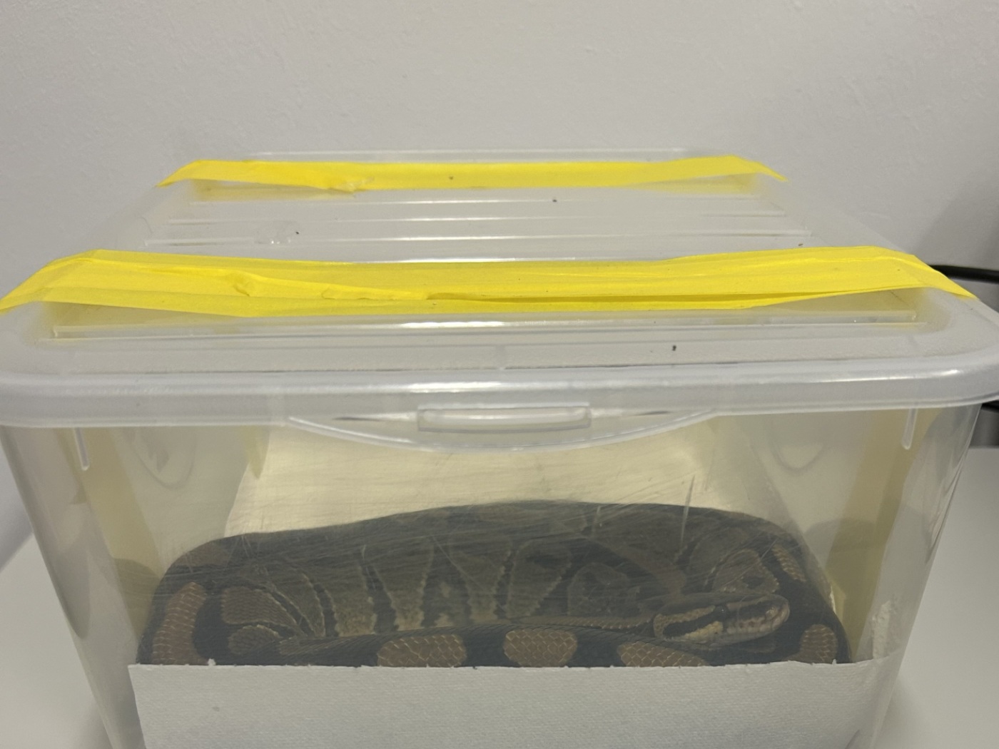 Beamte des Bundesamts für Zoll und Grenzsicherheit haben in Porto Ronco TI eine Königspython beschlagnahmt. Die ungiftige Würgeschlange fanden sie bei einer Kontrolle des Autos eines in der Schweiz lebenden Italieners.