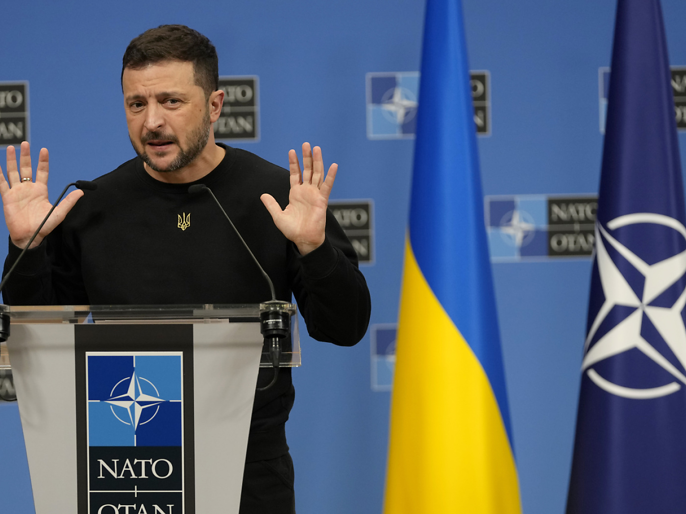 Bei einem Gipfeltreffen der EU-Staats- und Regierungschefs in Brüssel bekräftigte er seine Forderung nach einer raschen Einladung zur Nato-Mitgliedschaft. Sonst bliebe seinem von Russland angegriffenen Land nur eine atomare Wiederbewaffnung. «Welchen Ausweg haben wir? Entweder wird die Ukraine Atomwaffen haben, oder wir müssen in irgendeiner Allianz sein», sagte er. Ausser der Nato kenne er keine funktionierenden Allianzen.