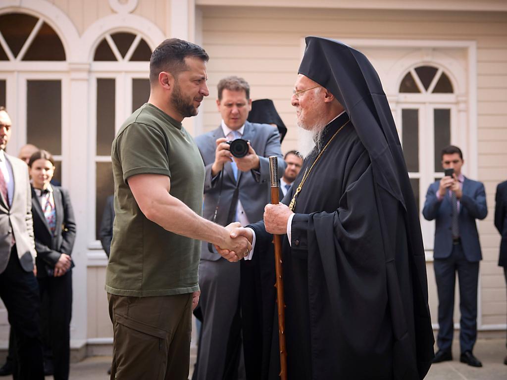 (Keystone-SDA) Der ukrainische Präsident Wolodymyr Selenskyj ist bei seinem Besuch in Istanbul am Samstag mit dem geistigen Führer der orthodoxen Christenheit, Bartholomäus I., zusammengetroffen. Der Ökumenische Patriarch von Konstantinopel ist für seine offene Kritik an der russischen Invasion im Nachbarland bekannt. Wie Selenskyj auf Twitter mitteilte, kam er mit ihm zu einem Gedenkgottesdienst für die Opfer des Ukrainekriegs in der Georgskathedrale in Istanbul, dem früheren Konstantinopel, zusammen.