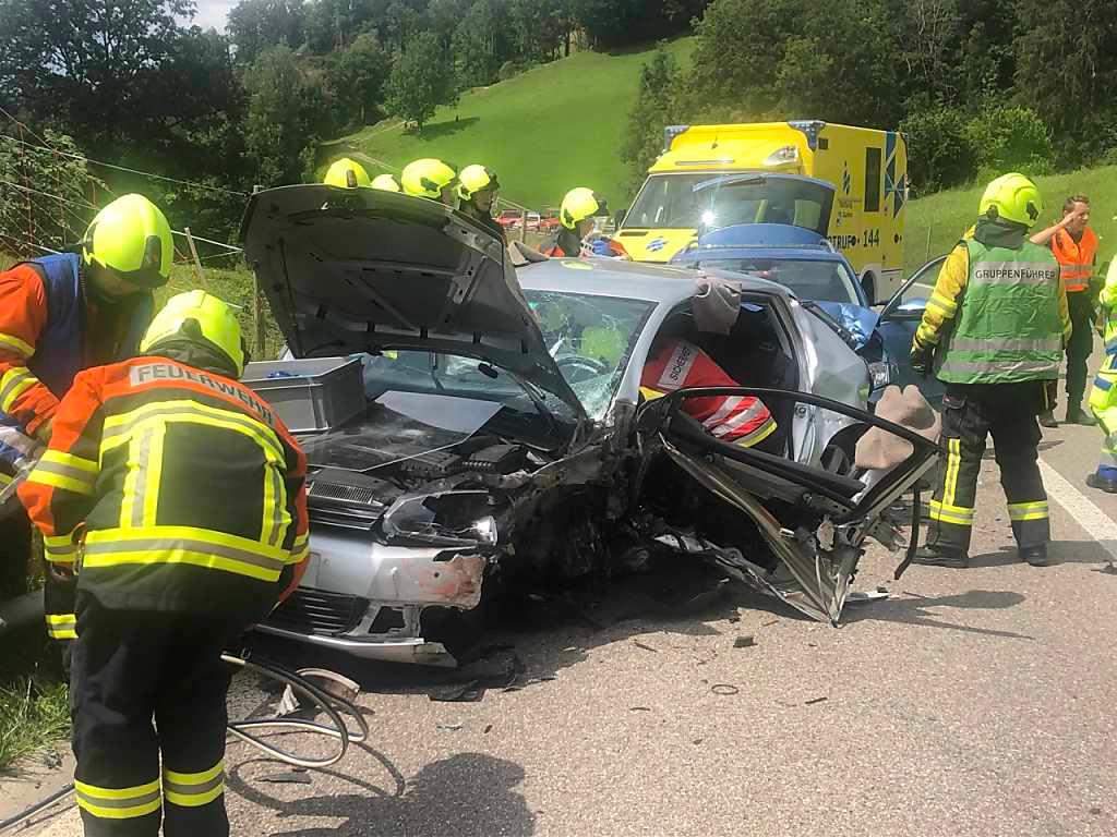 Anschliessend prallte die 19-Jährige frontal in ein ebenfalls entgegenkommendes zweites Auto. In den drei am Unfall beteiligten Fahrzeugen befanden sich insgesamt sieben Personen. Die Feuerwehr musste die Fahrerin des unfallverursachenden Wagens und ihren Beifahrer aus dem Auto befreien.