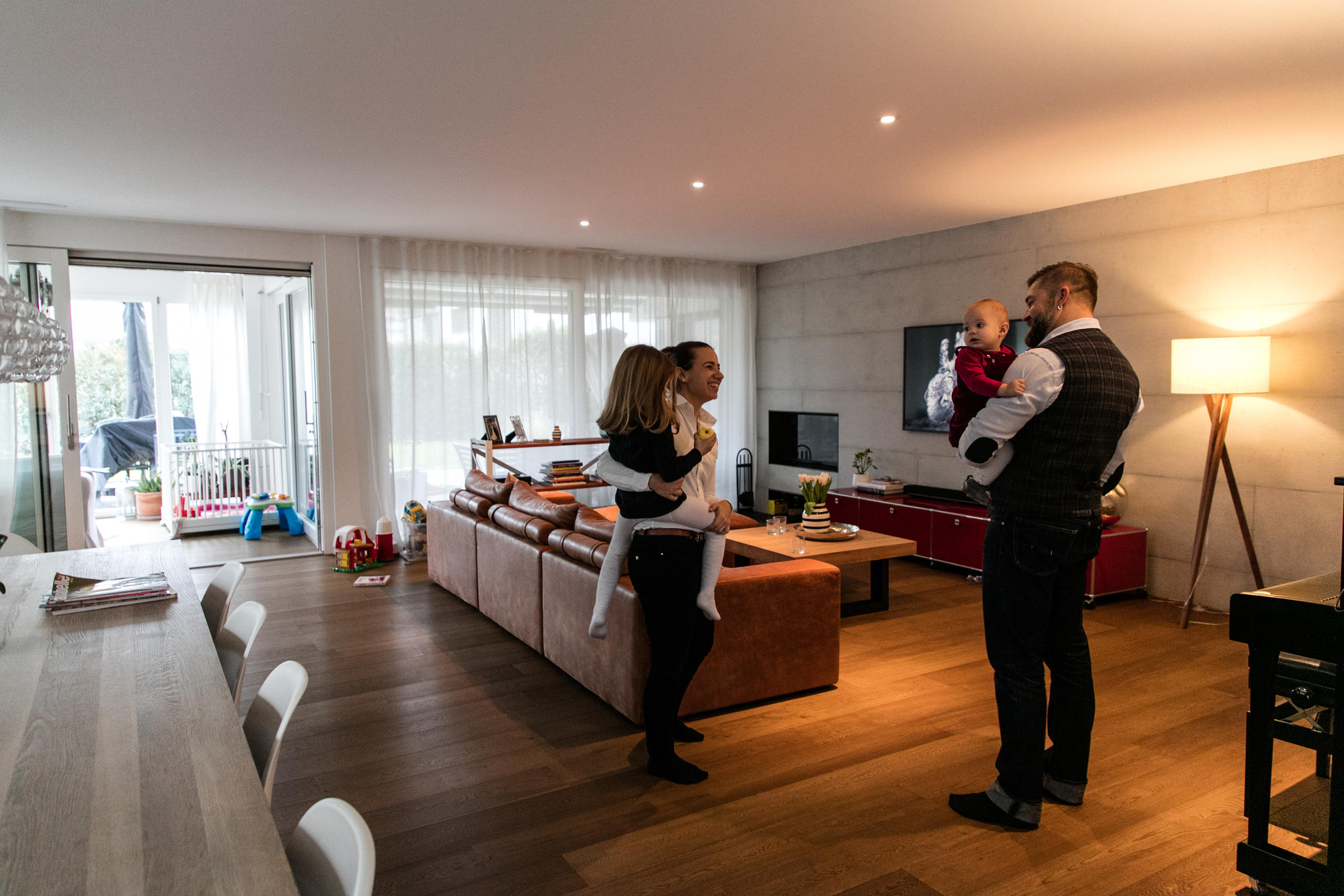 Erica und Mirko haben 15 Jahre Erfahrung mit Minergie. Zunächst wohnten sie in einer Minergie-zertifizierten Mietwohnung. Vor etwa fünf Jahren kauften sie sich eine 5,5-Zimmer-Eigentumswohnung mit Minergie-Standard in der Agglomeration Zürich, wo sie mit ihren drei Kindern im Alter von zehn, vier und einem Jahr leben.