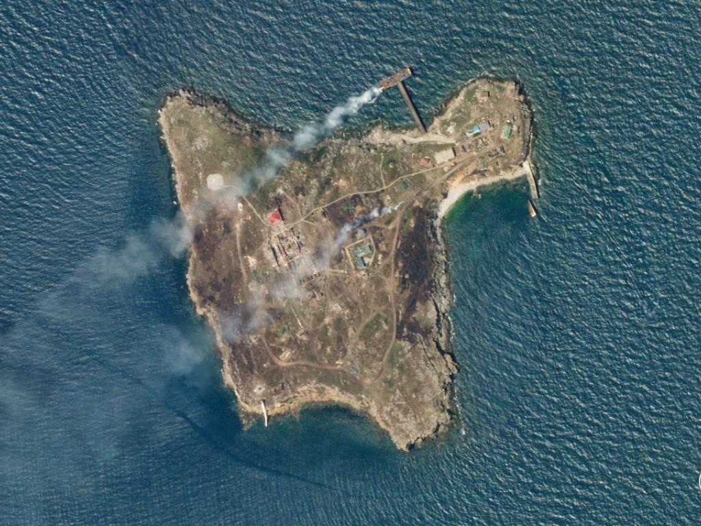 Am Donnerstagmorgen wurde der Anlegesteg der Insel ukrainischen Angaben zufolge durch zwei russische Raketen «erheblich beschädigt».