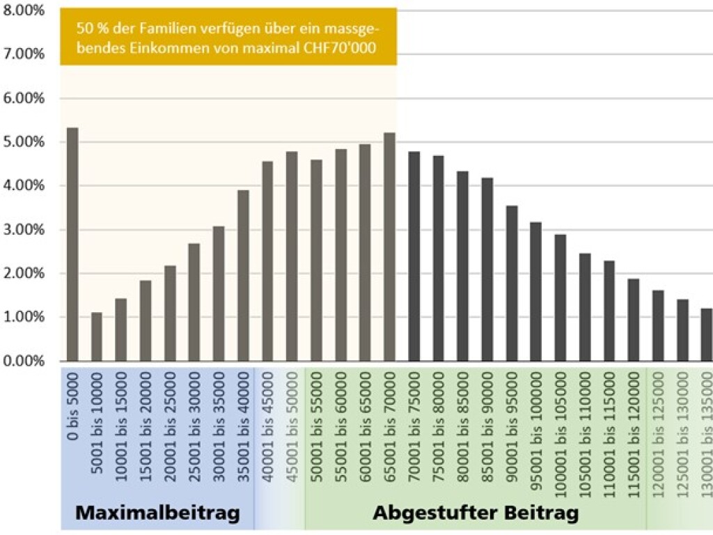 Neu sollen Eltern Beiträge für Kindertagesstätten, Tagesstrukturen und Tagesfamilien erhalten. Je geringer das Einkommen, desto höher werde die staatliche Unterstützung sein. Laut dem Gesetzesentwurf sollen Familien mit einem Einkommen unter 40’000 oder 50’000 Franken die höchsten Beiträge erhalten. Je nach Variante, welche die Gemeinde wählt, sollen 85 bis 93 Prozent der Familien von Unterstützung profitieren, wie es hiess.