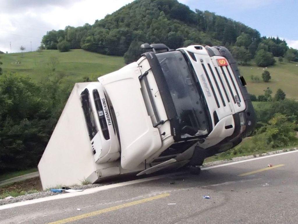 Dieser kippte auf die Seite und kam links von der Strasse an einem Bord zum Stillstand. Der Verkehr wurde vorerst einstreifig am Unfallort vorbeigeführt.