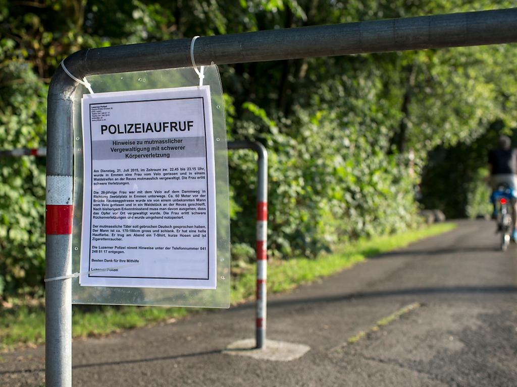 Das Opfer konnte aufgrund seines Gesundheitszustandes über eine längere Zeit nicht zum Vorfall befragt werden. Der Unbekannte hatte die Frau bei Emmen an der Reuss vom Velo gerissen und in einem nahen Waldstück vergewaltigt. Die Frau erlitt bei dem Überfall schwerste Verletzungen. Ihre Arme und Beine waren laut den Behörden nach der Tat gelähmt.