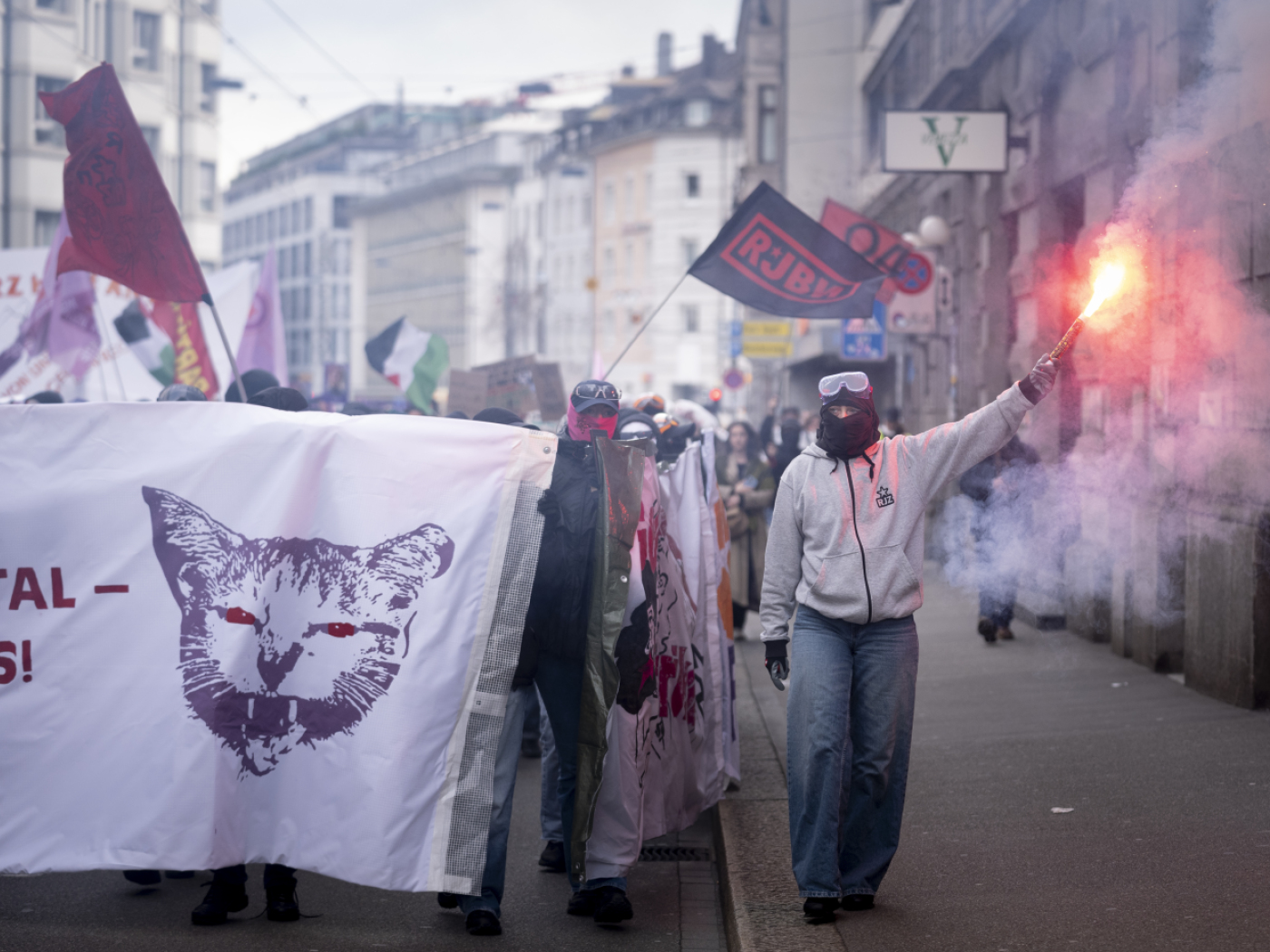 Die Demonstration richtete sich gemäss Aufruf gegen Gewalt an Frauen und queeren Personen. Wie die Polizei weiter schreibt, scherten immer wieder Gruppen aus, um Sprayereien anzubringen. Auch Farbbeutelwürfe registrierte die Polizei. Zudem wurden Petarden, Fackeln und andere Pyrotechnik gezündet.
