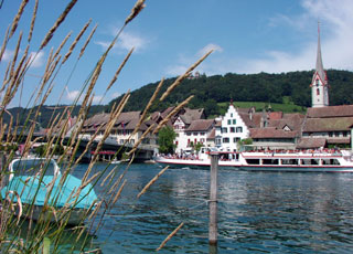 Von Stein am Rhein fahren Ausflugsschiffe nach Schaffhausen und an den Bodensee. Ausserdem laden die Rheinpromenade und unzählige Restaurants zum Verweilen ein.