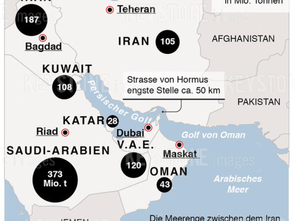 Die US-Regierung machte den Iran für die Angriffe verantwortlich. Der Seeweg vom Golf von Oman durch das Nadelöhr von Hormus in den Persischen Golf ist auch ein wichtiger Transportweg für Öltanker.