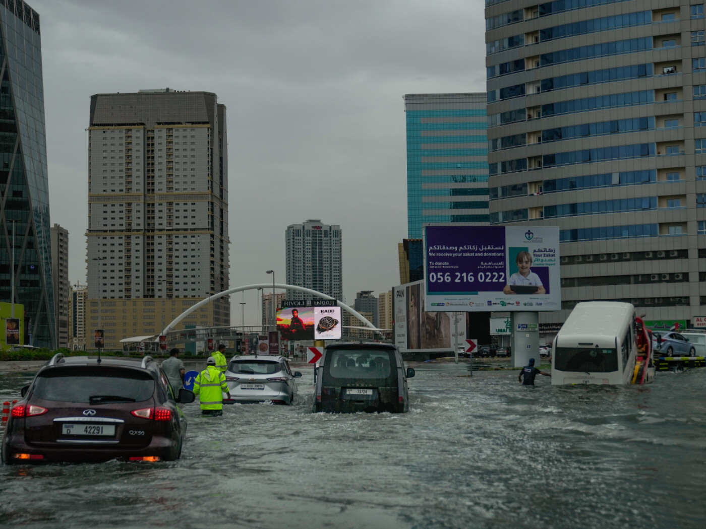 Nach Starkregen waren Strassen in einigen Städten der Vereinigten Arabischen Emirate überflutet. In Dubai steckten Autos im Wasser fest, Menschen wateten durch hüfthohes Wasser.