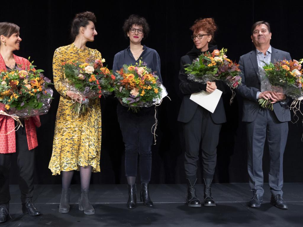 Die höchste Auszeichnung im Schweizer Literaturbetrieb erhielt Berg (im Bild zweite von rechts) für ihr Werk «GRM Brainfuck», ein fast 650 Seiten langer einziger Aufschrei gegen die Folgen eines entfesselten Kapitalismus. Die aus Deutschland Gebürtige ist, wie der Titel ihres mit 30’000 Franken preisgekrönten Werkes zeigt, keine Meisterin, die im stillen Kämmerlein den leisen Tönen huldigt.
