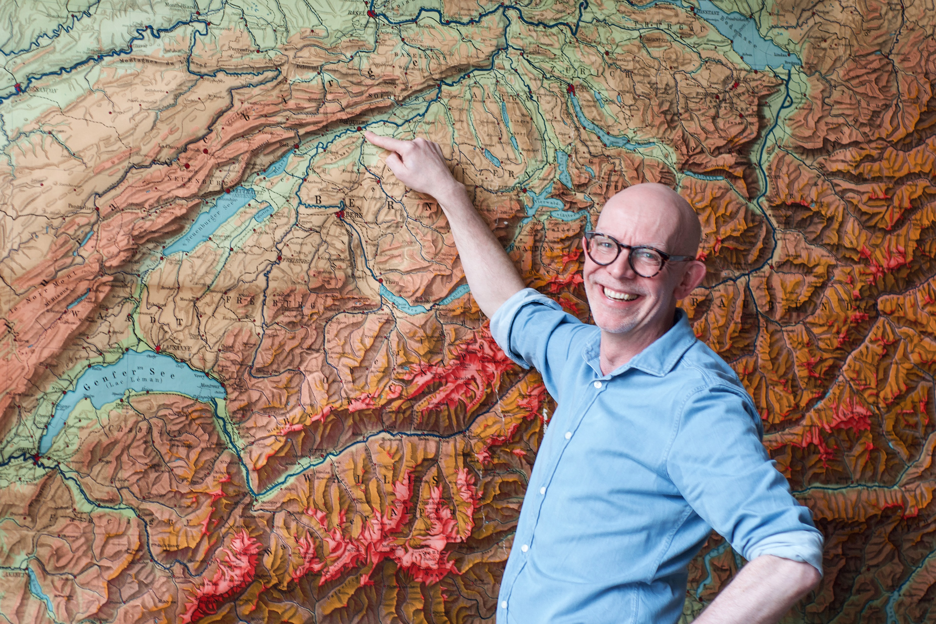 In der Lobby hängt über einem der Sofas eine Schullandkarte der Schweiz. Thomas Gisiger steigt auf das Polster und zeigt auf Solothurn, seine Heimatstadt. «Ich bin Heimweh-Schweizer», bekennt er. In Hamburg hat er jedoch eine Zweite Heimat kreiert und gefunden.
