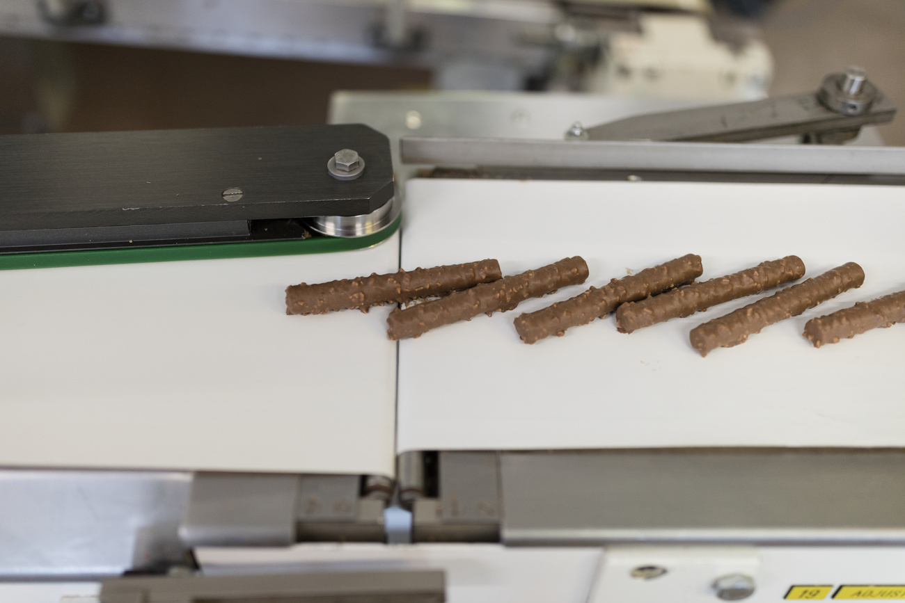 Caillier Schokoladen Herstellung in der CaillierProduktion in Broc, Kanton Fribourg, am 29. Januar 2016. Caillierist die Schweizer Schokoladenmarke der Firma Nestle. Herstellung der Branche CaillierSchokoriegel, hier rollen die Riegel auf einem Fliessband in Richtung Verpackung. (KEYSTONE/Gaetan Bally)